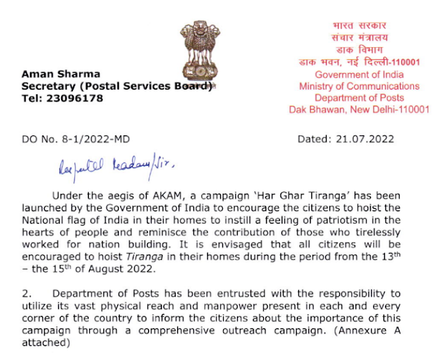 3. India Post to send SMS and emailers to its customers for participating in the campaign and to buy the flag from the nearest post office.